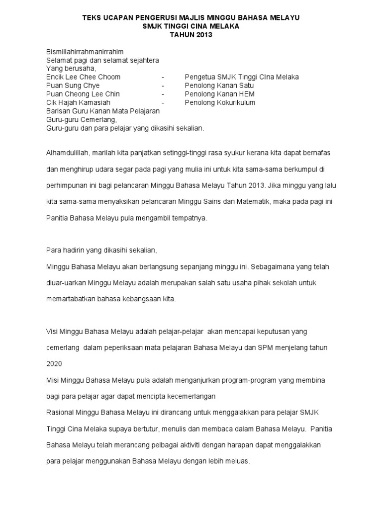 Teks Ucapan Pengerusi Majlis Minggu Bahasa Melayu Pdf